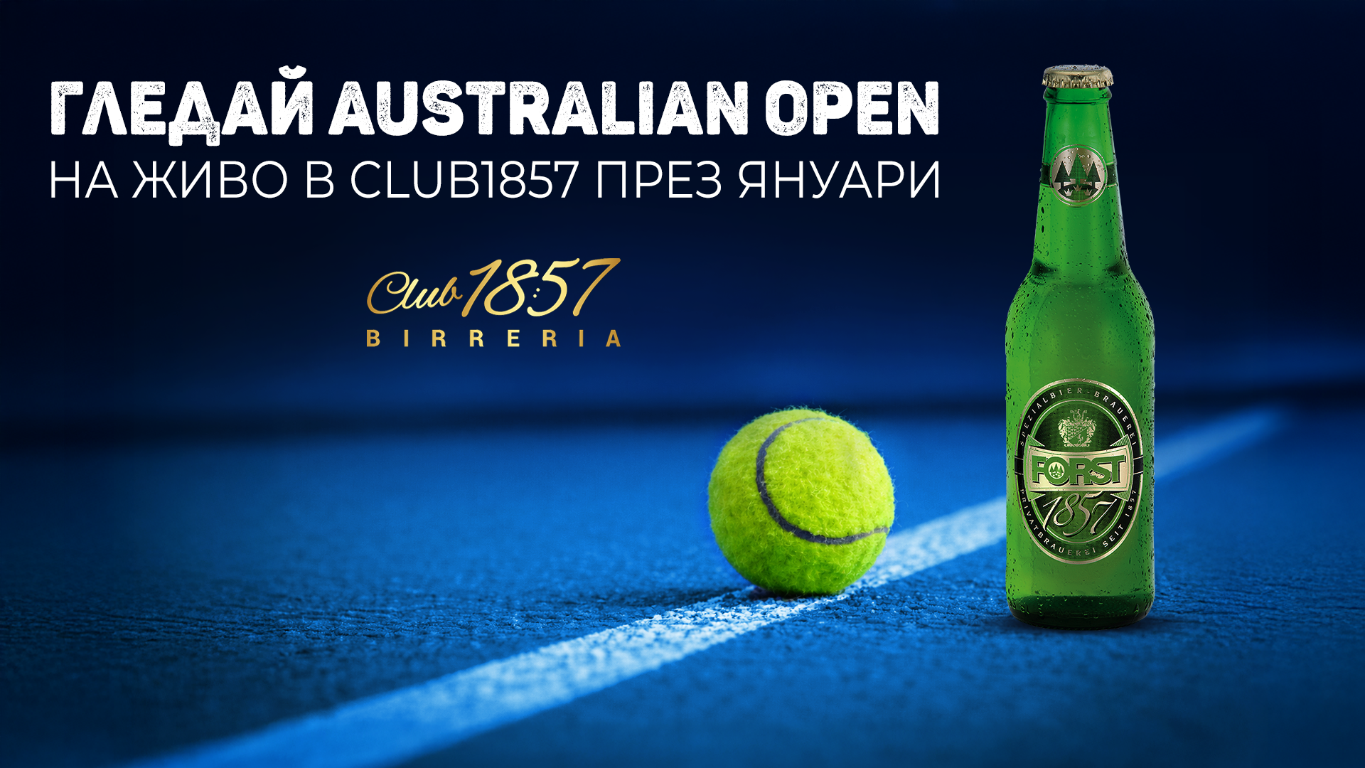 През януари 2026 г. в Club 1857 може да гледате тенис мачовете от Australian Open на живо в автентична спортна обстановка. Барът е разположен в сърцето на София и предлага уютна атмосфера, където да се съберете с приятели и да гледате спорт на големи екрани.