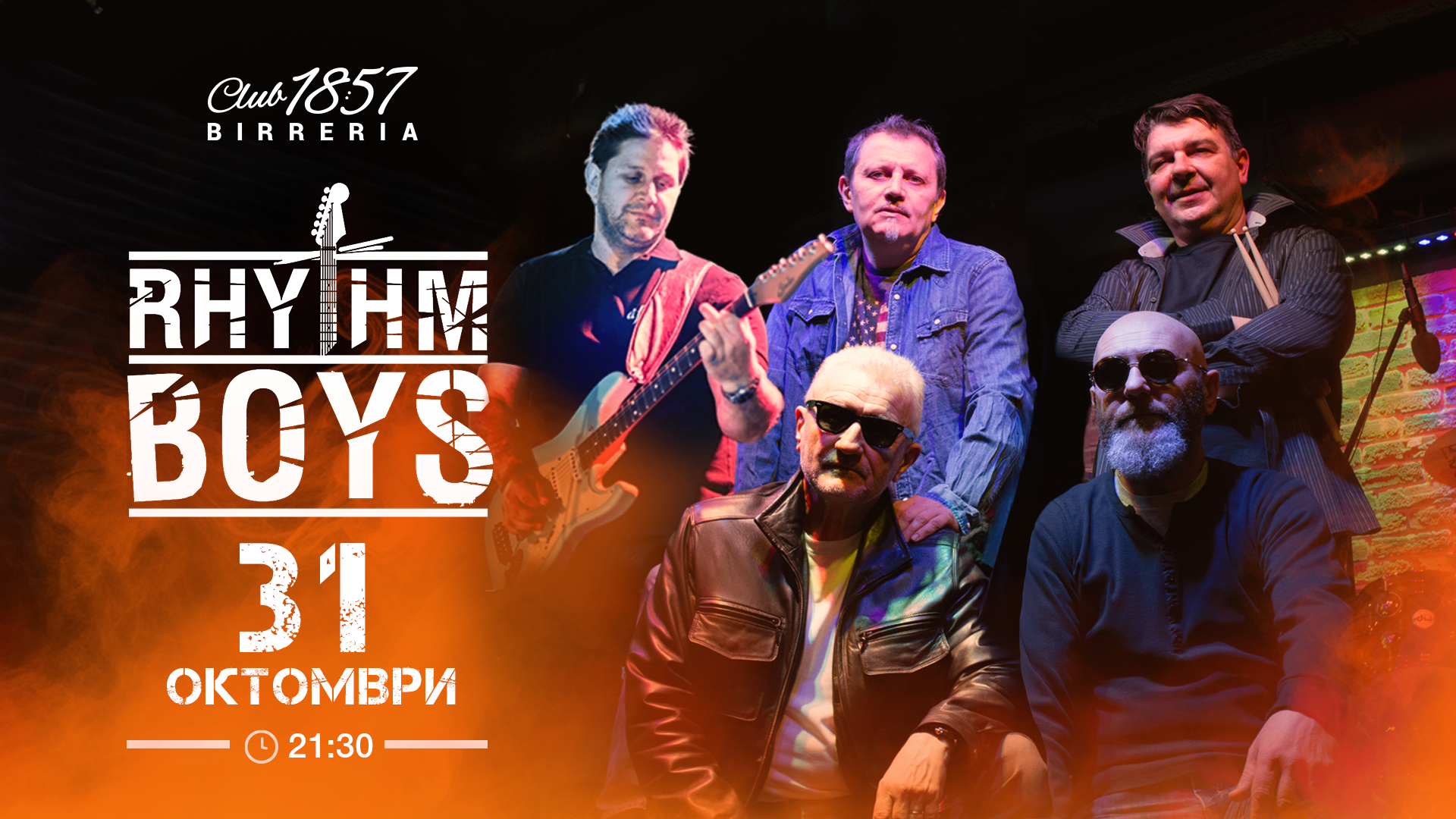 На 31 октомври Rhythm Boys отново ще излязат на сцената на Club 1857, за да внесат ритъм, който събужда емоции и изпълва залата с енергия. Подгответе се за нощ, изпълнена с танци, добро настроение и незабравимо музикално изживяване!